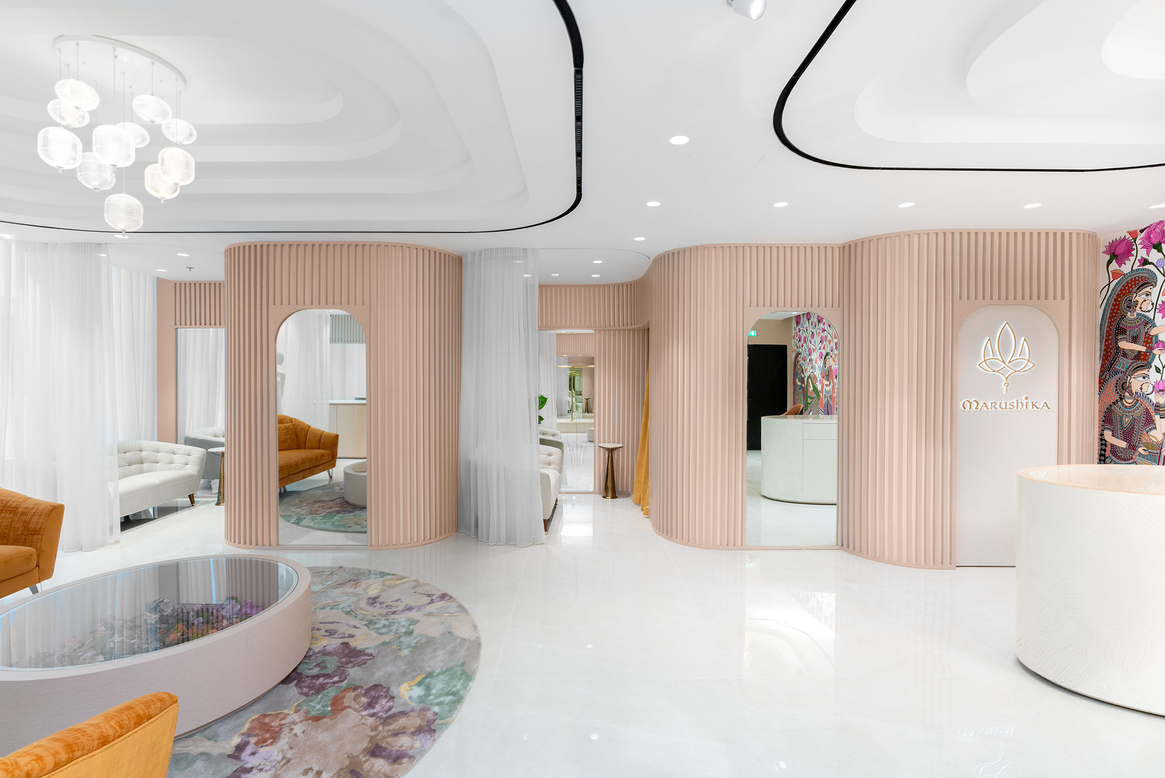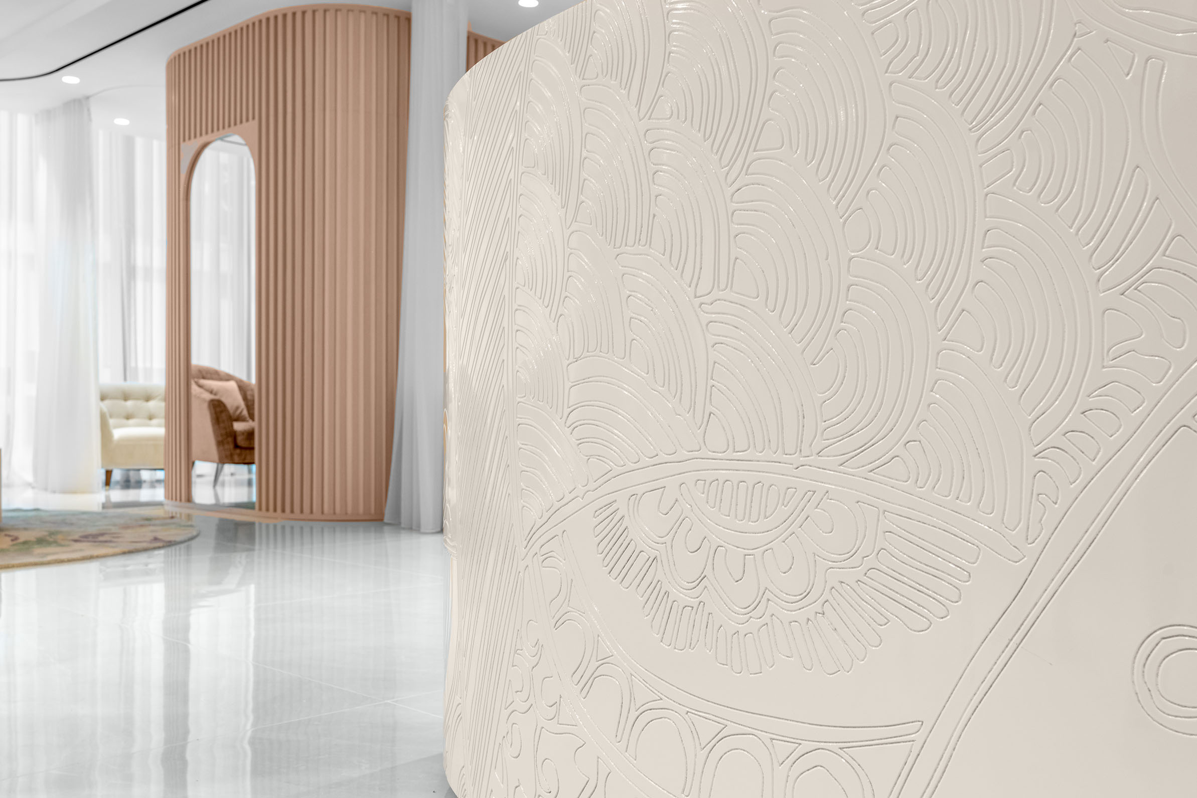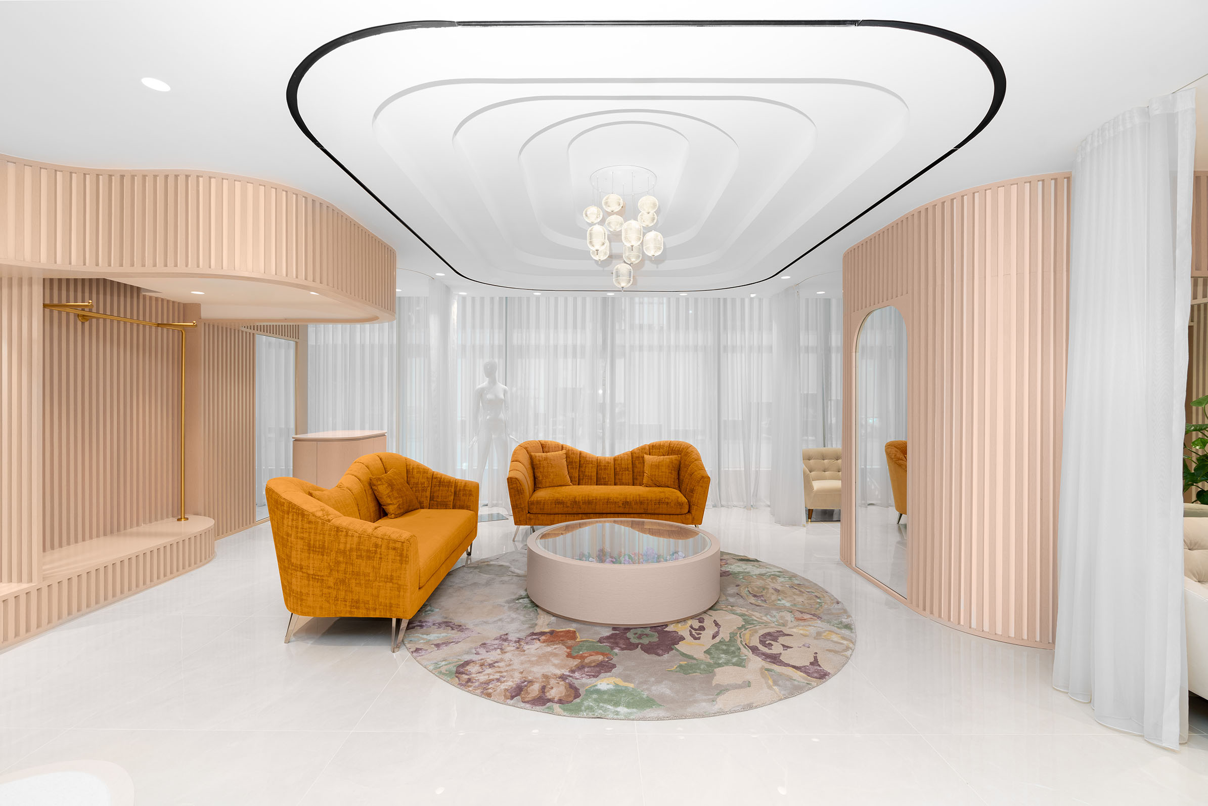 A seamless flow of curved lines evokes the elegance of fabrics and velvets, while unusual shapes create a unique and immersive space. The design transforms the environment into a completely new experience.