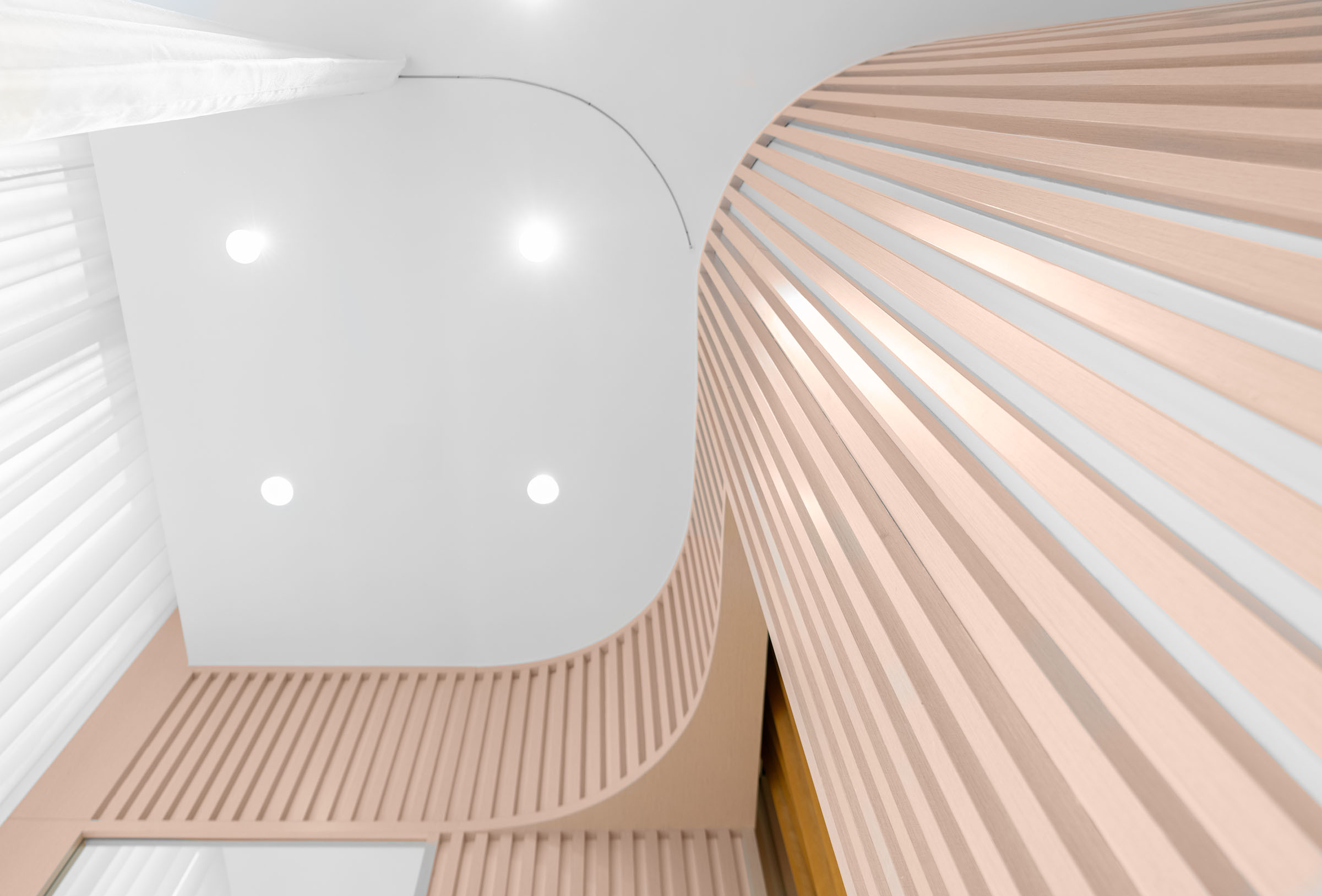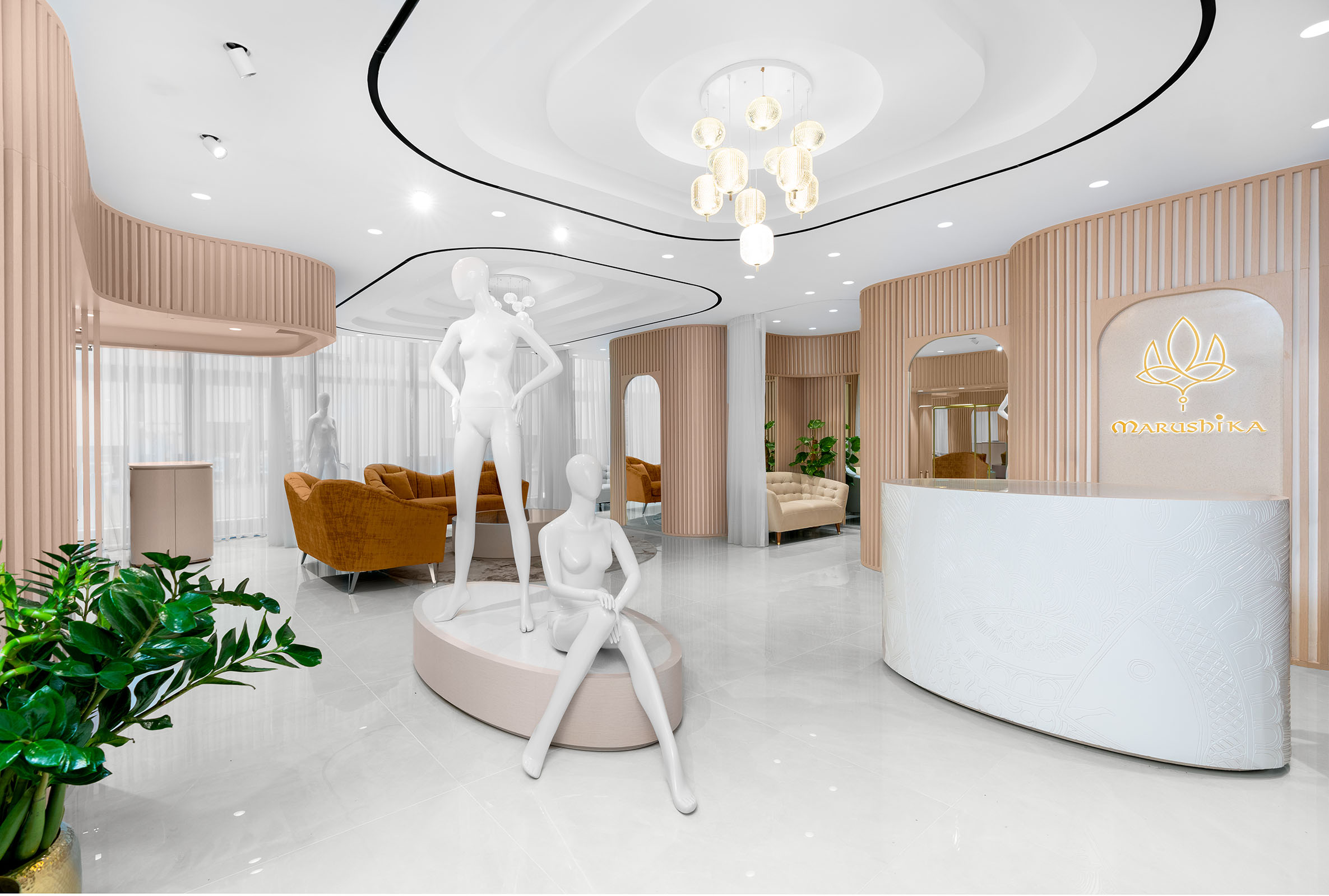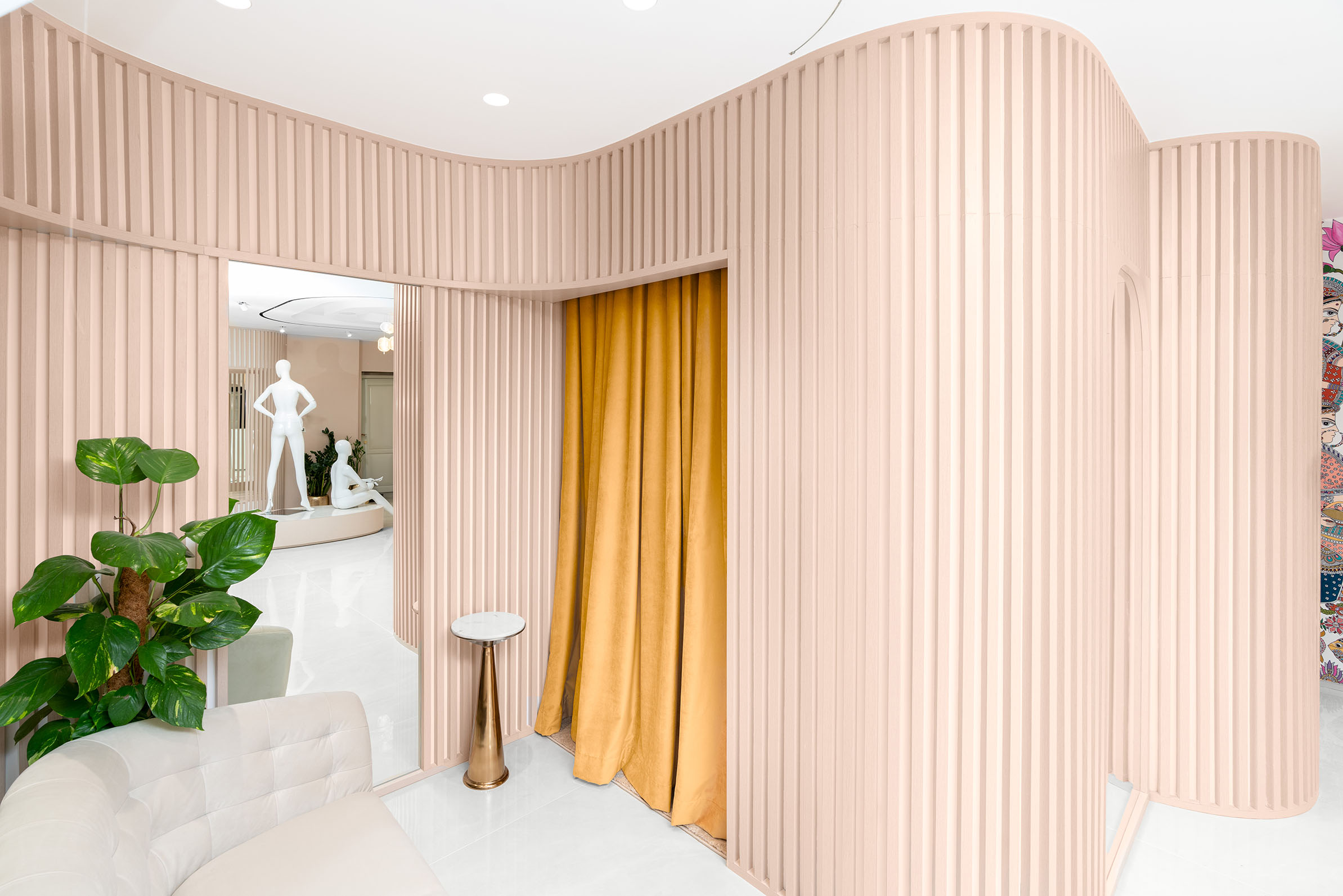 A seamless flow of curved lines evokes the elegance of fabrics and velvets, while unusual shapes create a unique and immersive space. The design transforms the environment into a completely new experience.