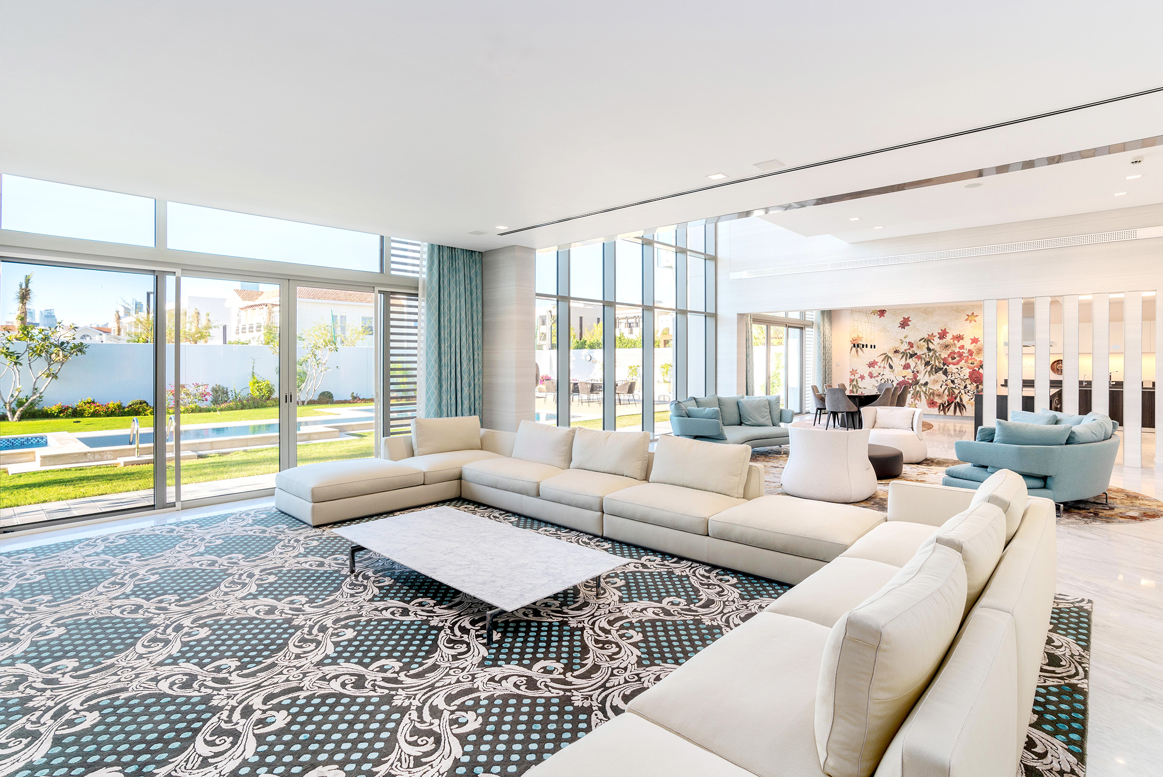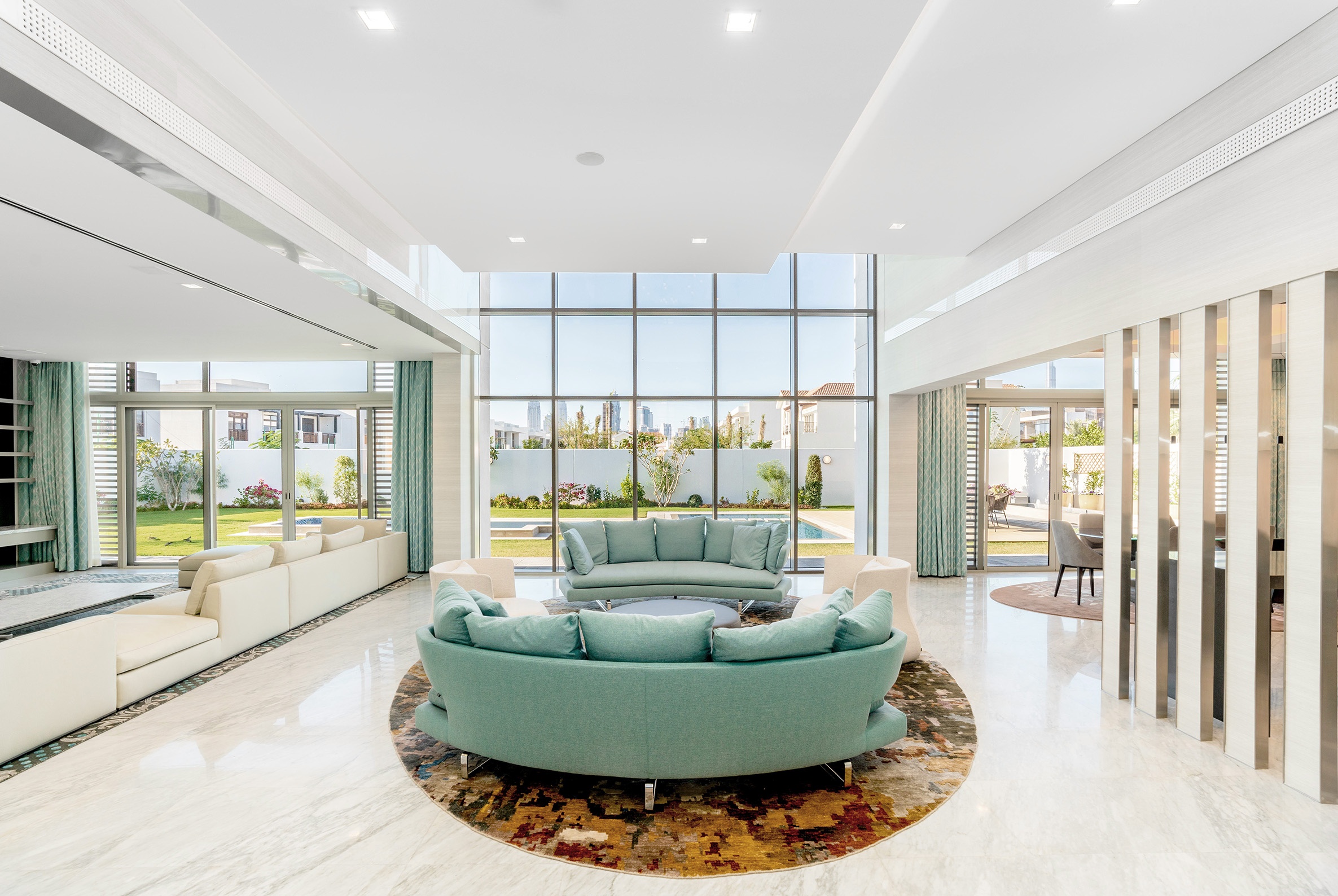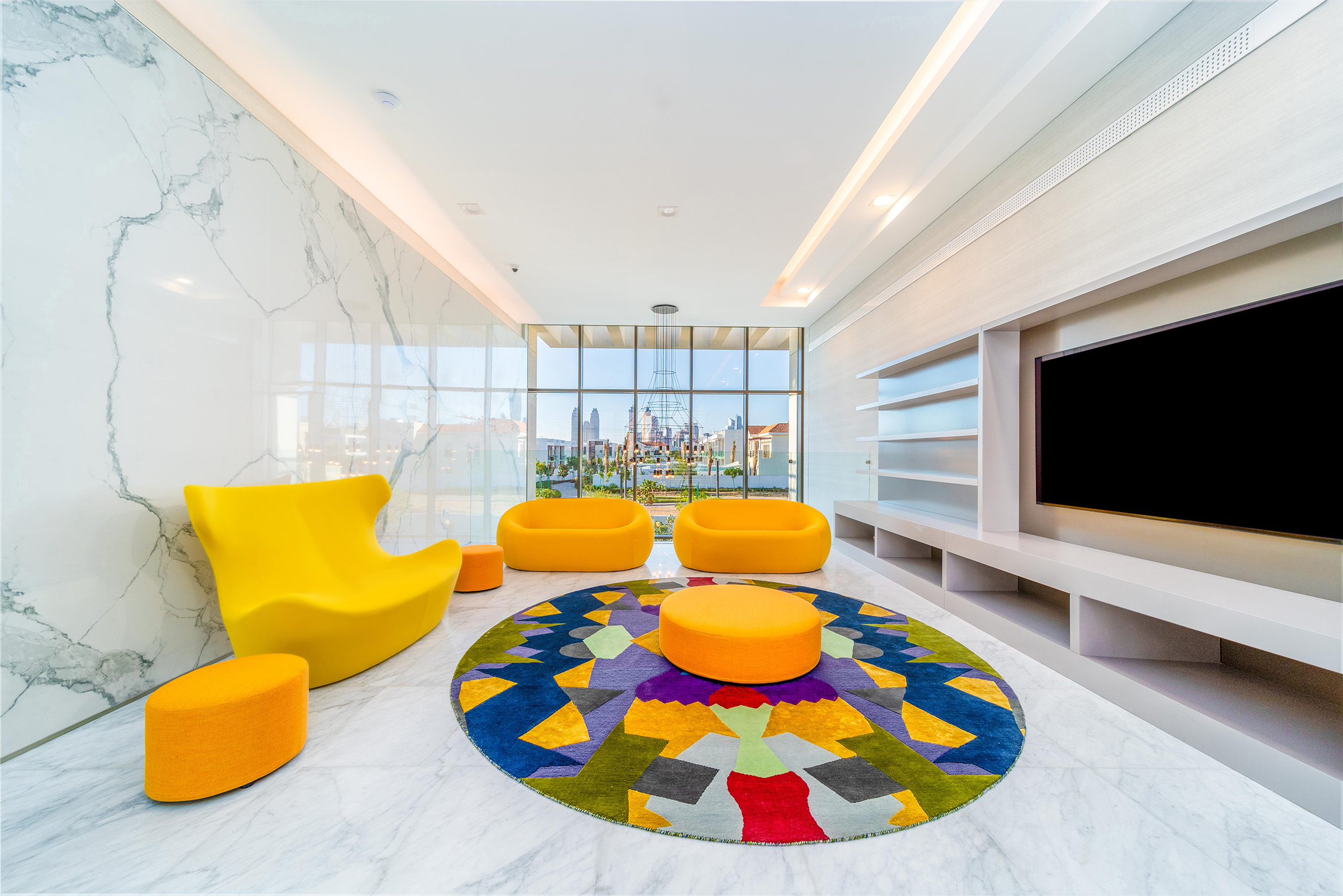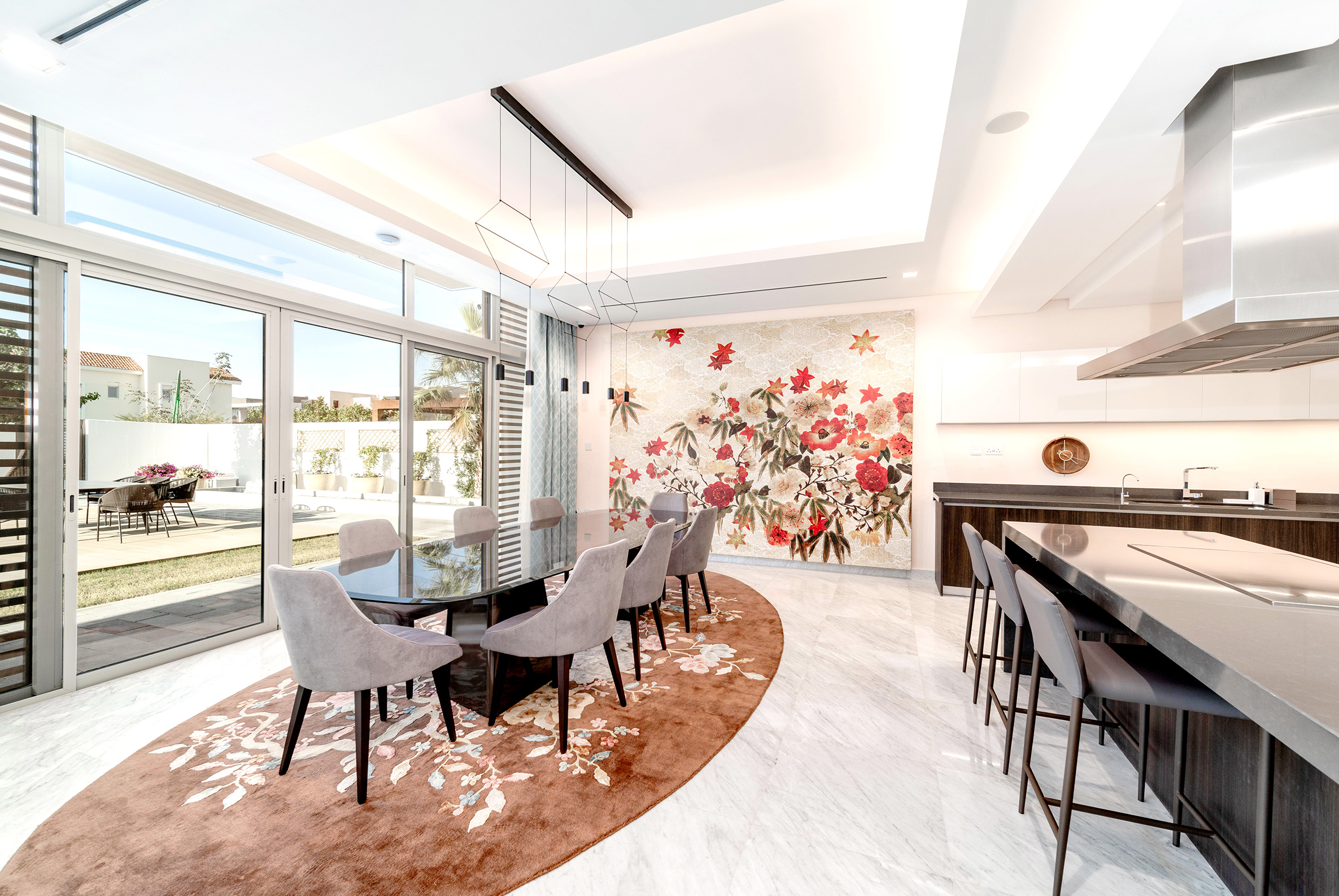 This villa features wide, open spaces enriched by luxury materials, with furniture that contrasts beautifully against bold accents. Each room is thoughtfully crafted to follow a distinct theme, offering a unique yet cohesive design throughout the villa. The space blends elegance with comfort, creating a harmonious and inviting atmosphere.
